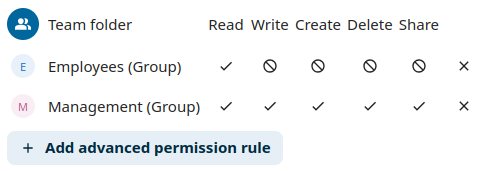 Les permissions avancées permettent de configurer des droits supplémentaires à l’intérieur des dossiers de base.